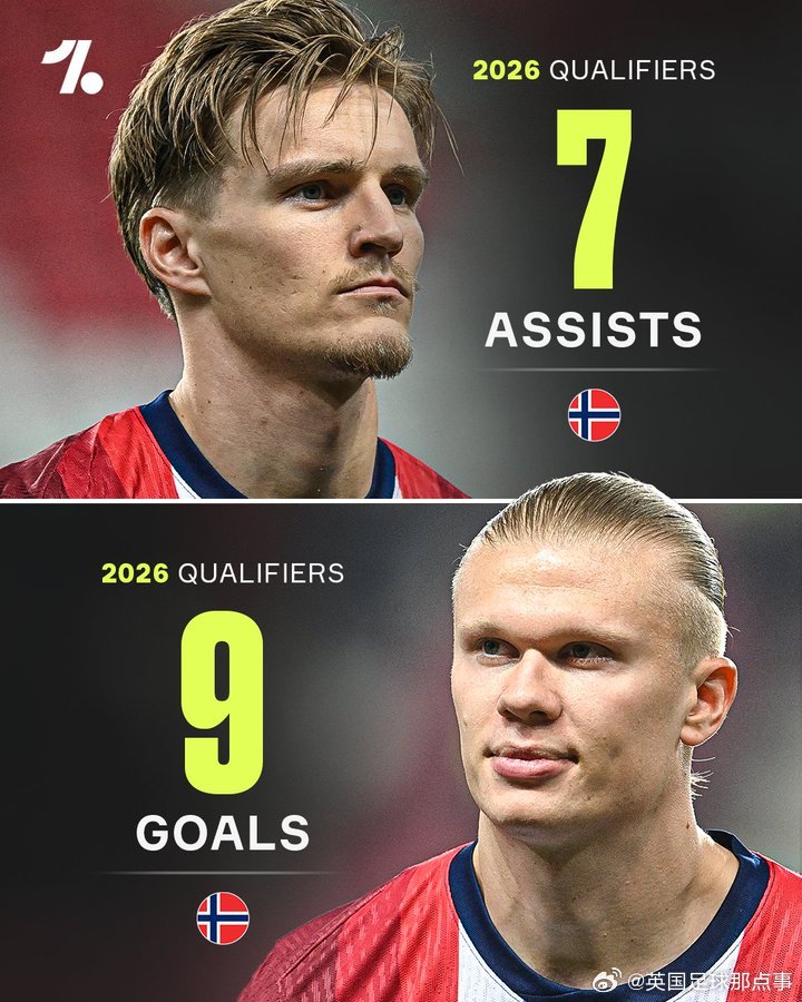 【挪威双子星✨】2026年世预赛欧洲区,哈兰德领跑进球榜,厄德高领跑助攻榜